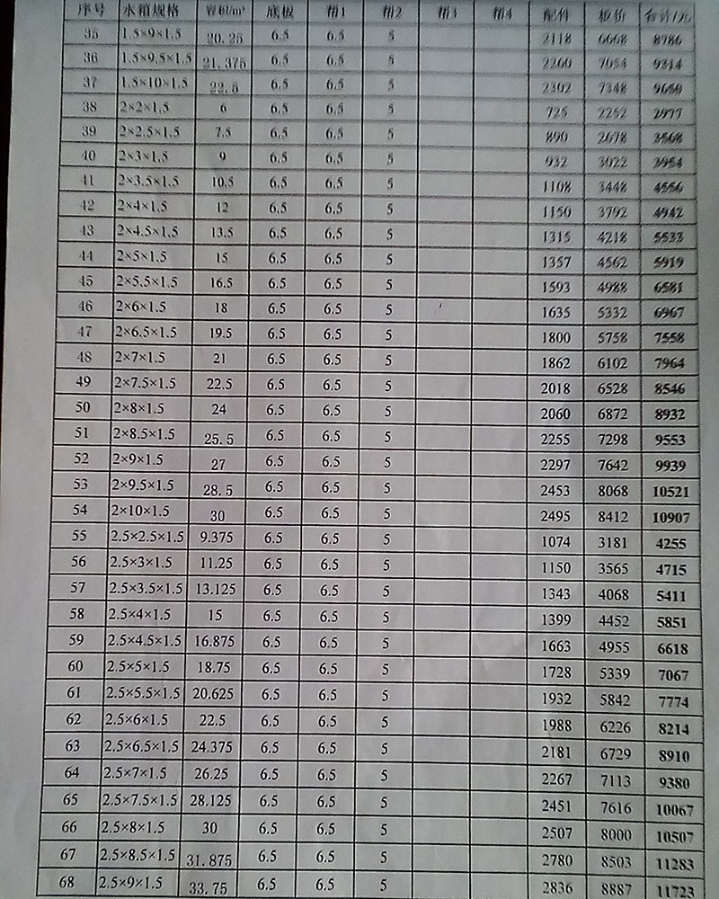 部分玻璃鋼水箱2016年新價格表