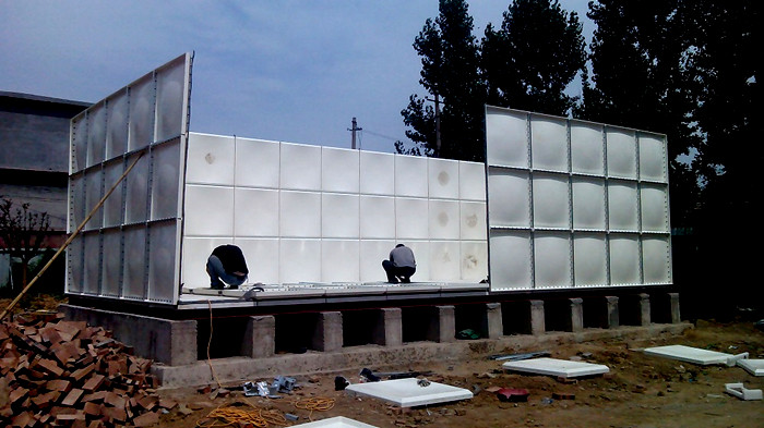 六、土建施工時(shí)先做好支撐,玻璃鋼水箱四周及箱體板塊之間的連接縫應(yīng)該落在支墩上。