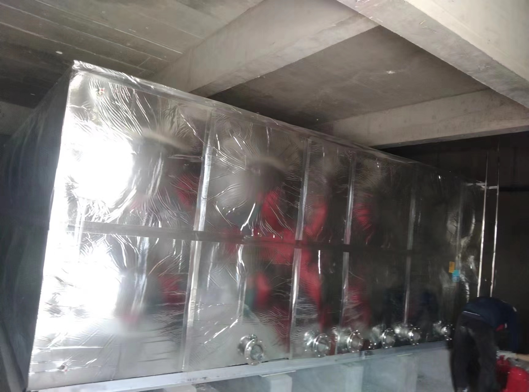 我公司承接的山東泰安55立方不銹鋼保溫水箱已經安裝試水完成,此次水箱是用作