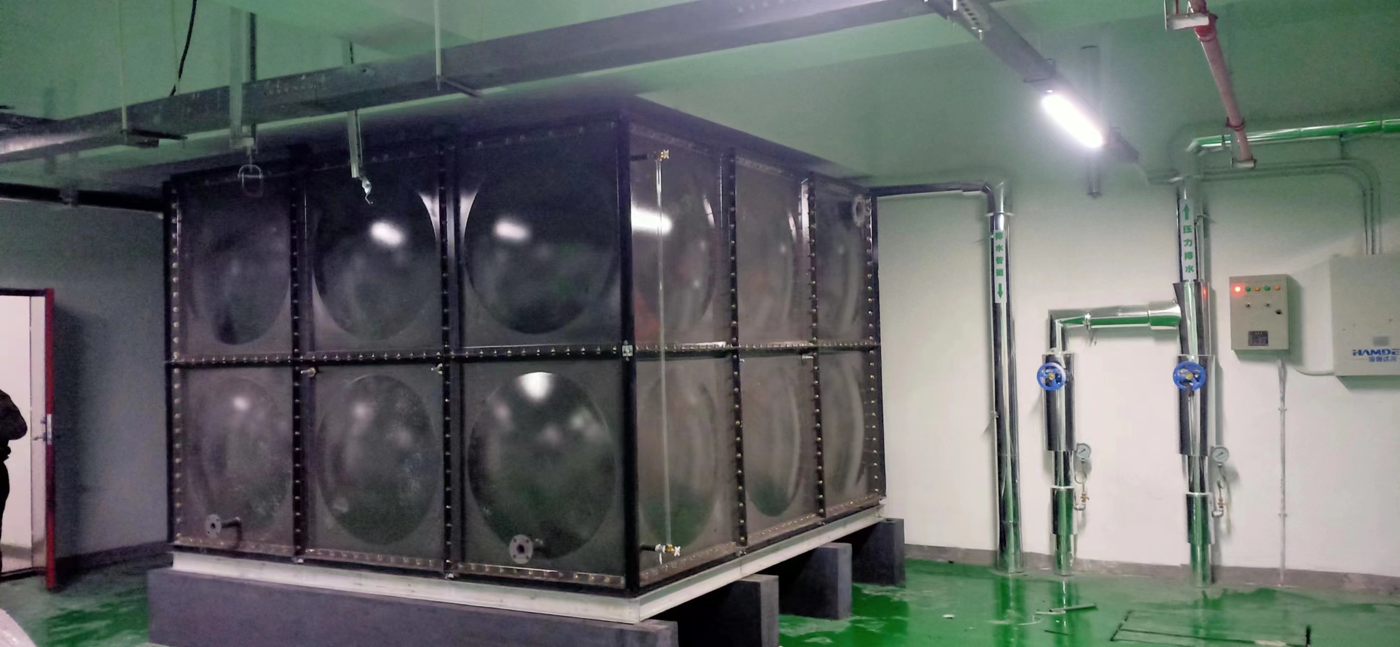 搪瓷水箱(又名:搪瓷鋼板水箱)是采用鋼板沖壓成標準模塊,經高溫燒結搪瓷,使水箱板面形成致密釉層,與鋼板界面離子之間互相,混合形成厚度約200-300微米的擴散層,搪瓷面的附著強度。