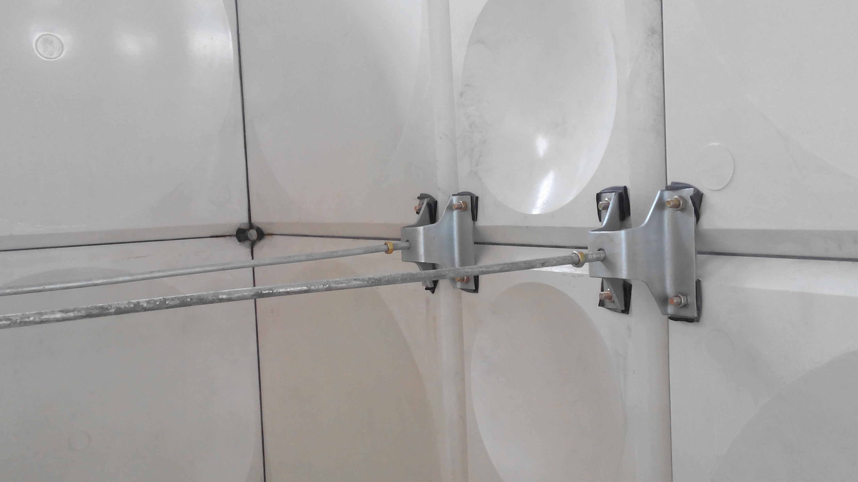 3、固定側板:將經檢測合格的玻璃鋼水箱壓制板按照順序點焊在水箱底板上,每張板在固定以后,均應用水平尺和線墜檢測垂直度,無誤后再點焊下一張, 直至所有側板點焊完成。