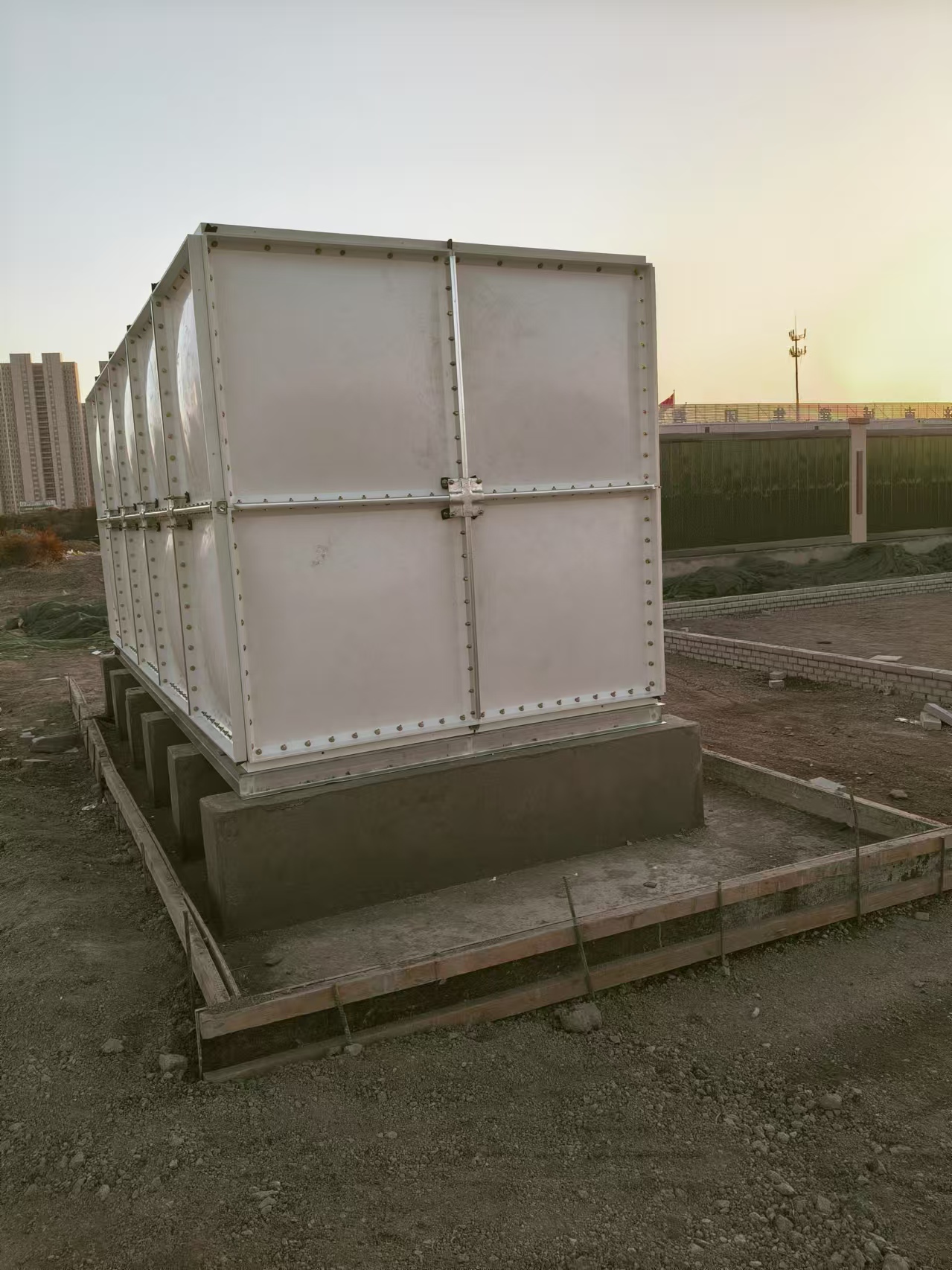 我公司承接的山東省濟南大園塘工地一臺20立方玻璃鋼水箱已經安裝完成,客戶用做工地臨時用水箱使用,客戶對我司質量及安裝表示滿意。現場實拍照片如下:
